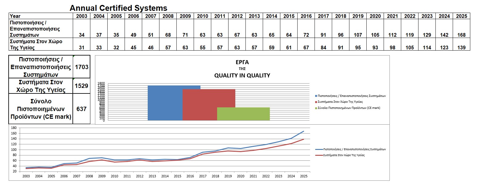 Ιδιαίτερη είναι η εμπειρία και η τεχνογνωσία που έχει αναπτύξει η Quality in Quality στον ευρύτερο χώρο των Ιατροτεχνολογικών Προϊόντων & της Υγείας, αφού έχει στο ενεργητικό της πάνω από 200 Συστήματα Ποιότητας στον ευαίσθητο και κρίσιμο αυτό χώρο.